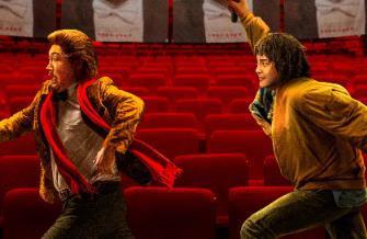今日同步发布的“抢笑新春”版预售海报也暗示了父子俩充满戏剧性的剧情,海报中辉煌的大剧院聚光灯下4幅浩良的形象海报十分引人注目,王春生和杨十月两个人在大剧院里的红色椅子间追逐,春生神情慌张得向前逃跑,不远处的十月手举话筒正气势汹汹地逼近,两人生动有趣的动作和喜感十足的神情处处透露出二人冤种父子的喜剧设定,展示出角色的独特性格,为影片增添了许多看点。而冒牌父子巡演路上又将如何斗智斗勇?真相被揭穿时他们又会如何面对?让我们拭目以待。